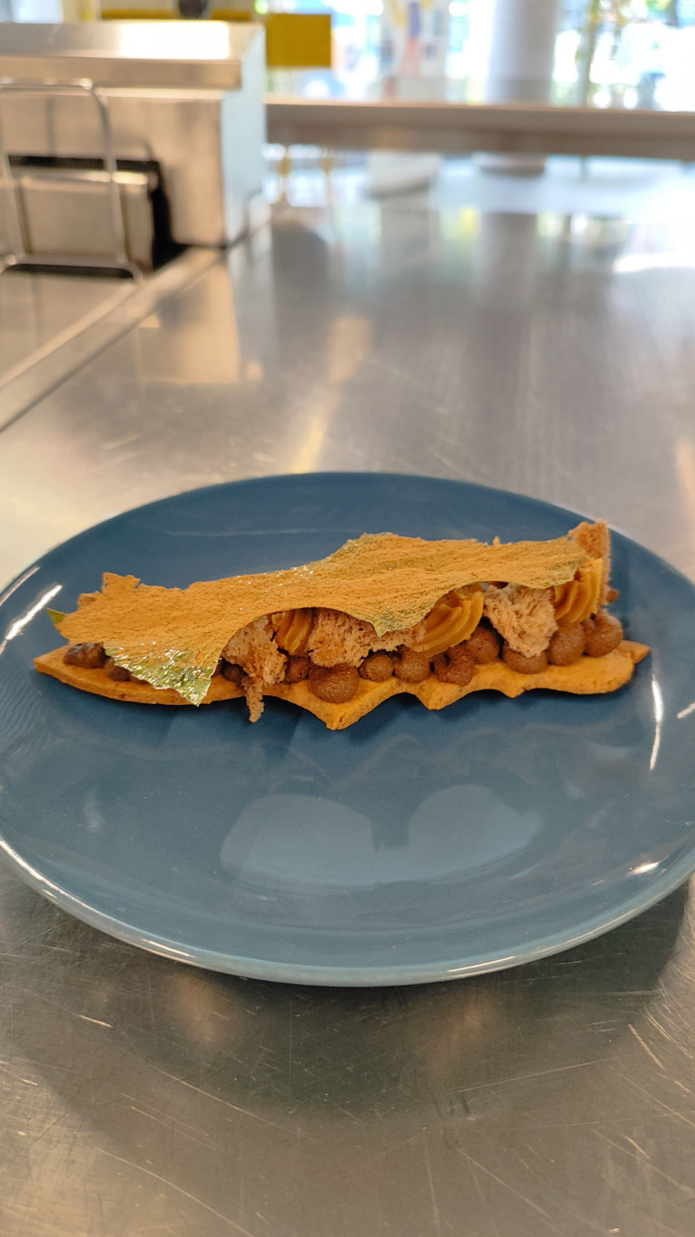 - Pesto elaborado con hojas de diente de león, anacardos y quedo curado de oveja
